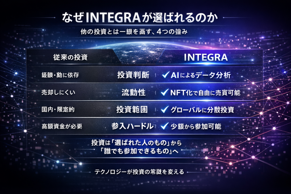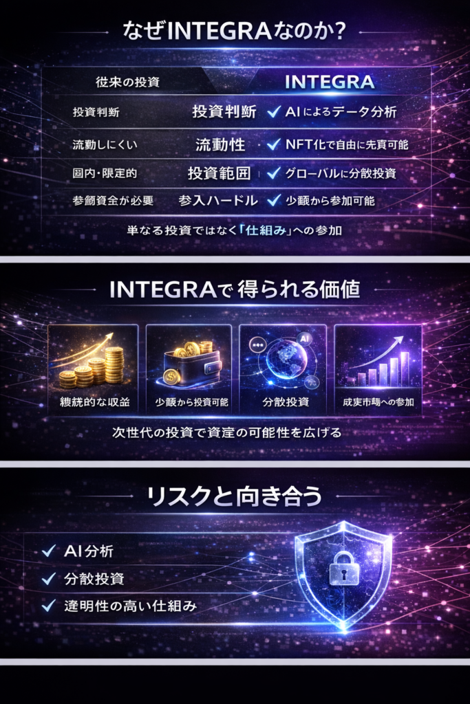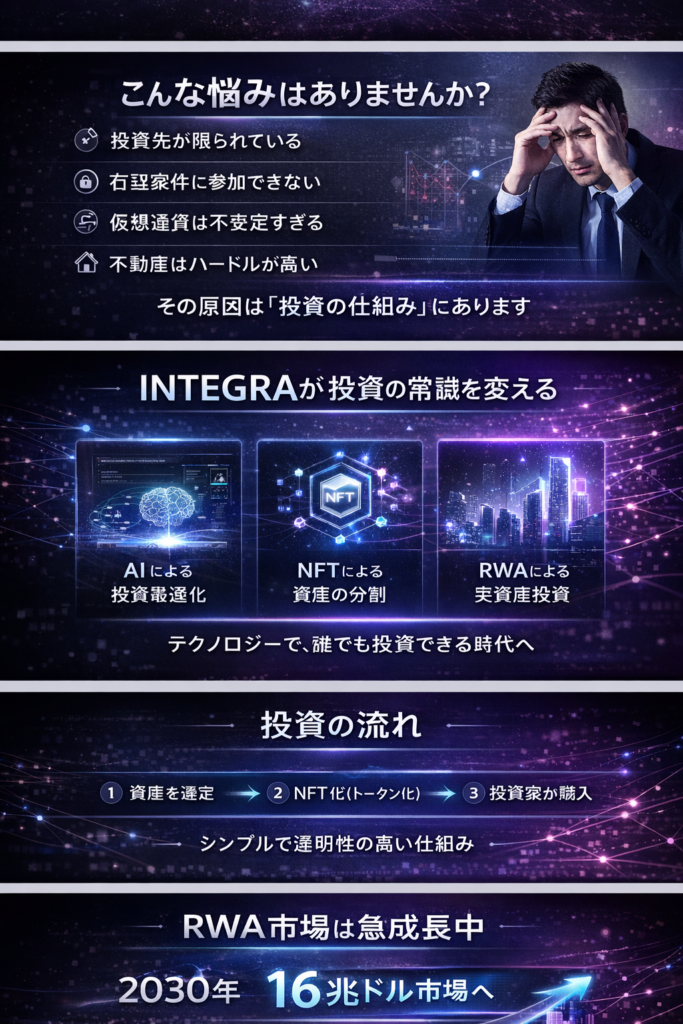 実体事業のキャッシュフローを、誰もが投資できる資産へ。RWAI (Real-World Asset Investment)とは、、動産・不動産・利権を対象とした小口投資を称します。